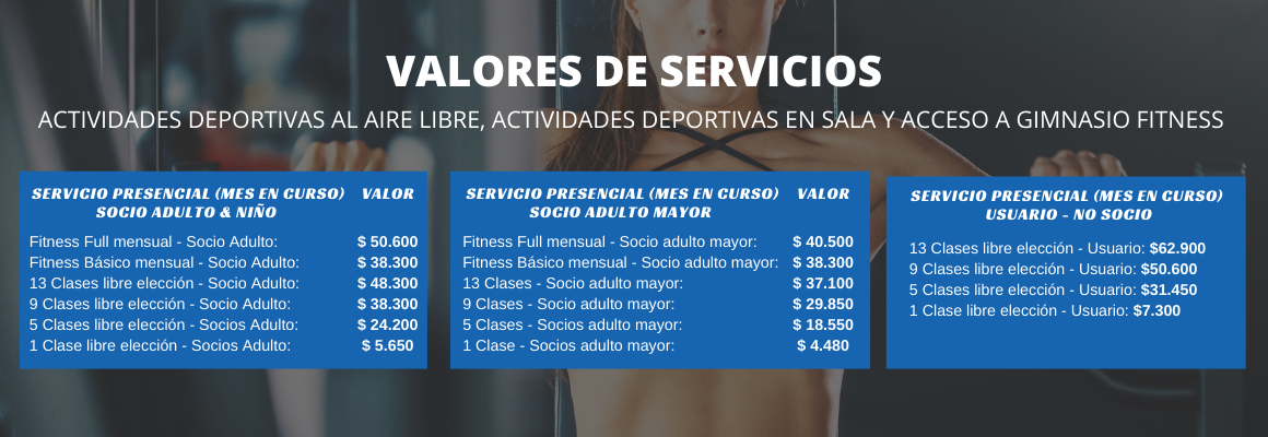 | 20:15 a 21:45 | (lu a vi) | Gimnasio Fitness | Fitness Full (Mayor a 14 años) | Ricardo Garrido / jorge castro |