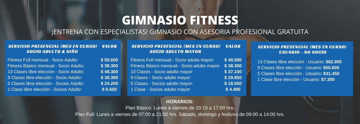 *El servicio de evaluación física y rutina de entrenamiento es un servicio gratuito, incluido en planes mensuales para socios.